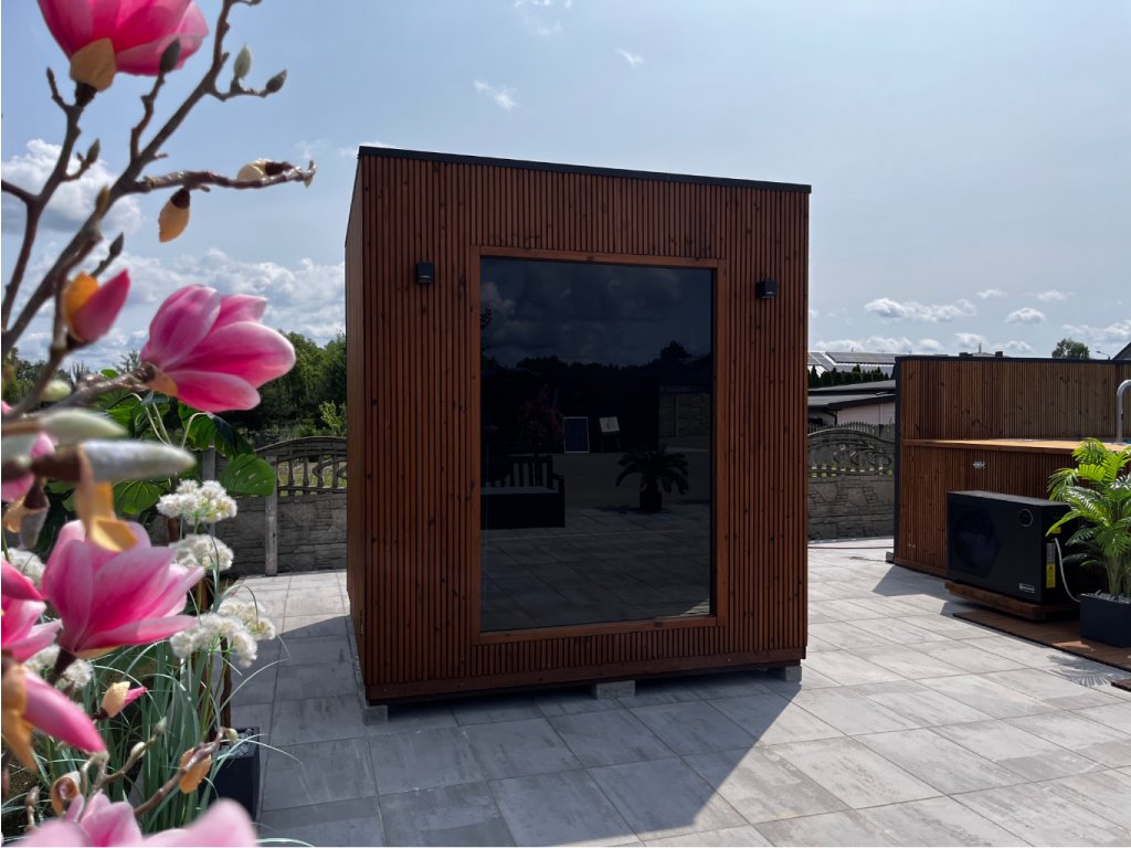 Prostorná venkovní sauna pro 4–6 osob s důrazem na kvalitní materiály, dlouhou životnost a každodenní komfort. Dodávána kompletně sestavená včetně možnosti montáže kdekoliv v ČR.