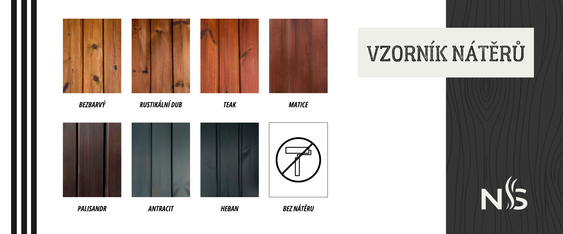 Dřevo je ošetřeno bezbarvou impregnací, která zachovává jeho přirozený vzhled.